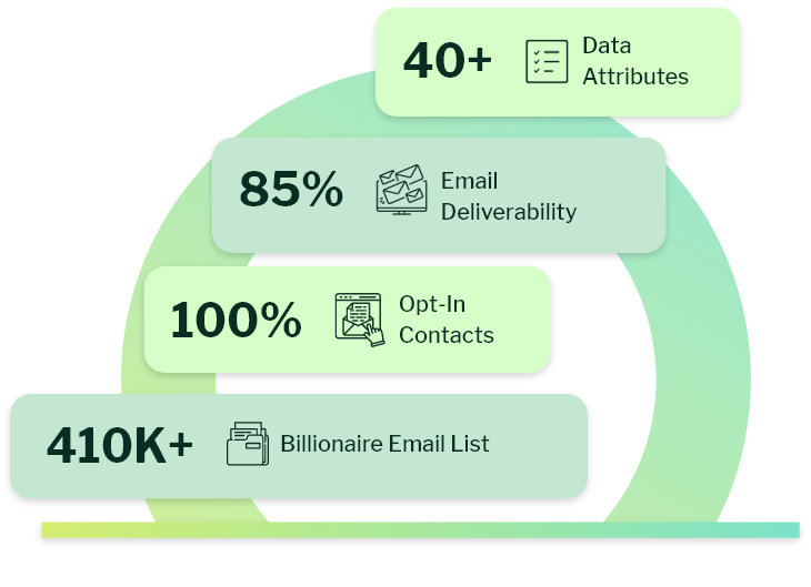 Our Billionaire Email List gives you a carefully curated database of 410K+ verified billionaires, CEOs, venture capitalists, angel investors, and global leaders of industry.